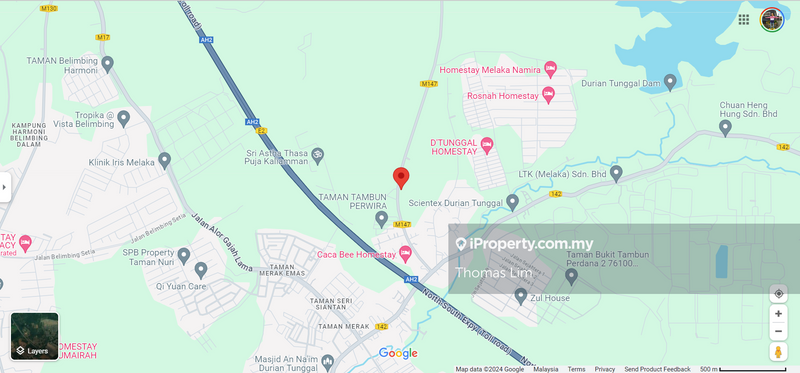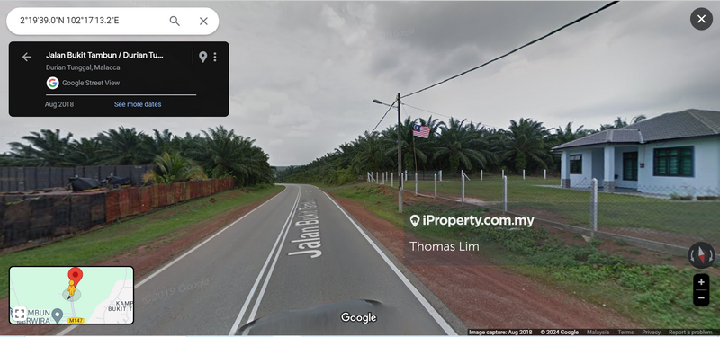 Durian Tunggal Melaka Freehold Development land 21 ac made up of 4 titles . Land Category : Building . Development potential for Landed properties. 10 mins from Air Keroh toll and 40 mins to Jonker Street ,Melaka.. Land is flat with gentle slight slope up towards the end . Has a direct wide frontage along Jalan Bukit Tambun / Durian Tnggal that is super for exposure. Has a building shed @ front and towards end has many Durian trees of 101, Tek Kar , D24 variety and Musang King plus some fruit trees. Potential for a housing development . Interested pls call Thomas