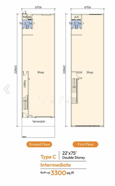• Type: 2 storey intermediate shop lot (Main Road)