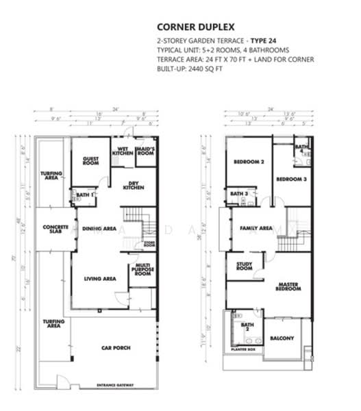 - 土地面积 30 英尺 x 70 英尺