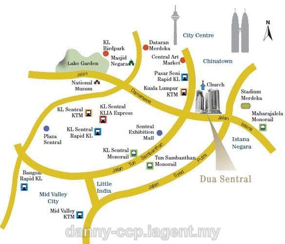 Dua Sentral is a part of a "city-within-a-city" concept consisting of a global office address, luxurious living, shopping, international exhibitions and entertainment hub for the district of Brickfield. It will consists of 2 towers, 33 storeys each.