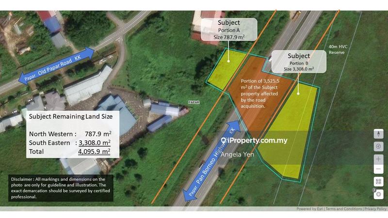• After the land acquisition for the Pan Borneo Highway, the remaining land size are more or less as follows :
